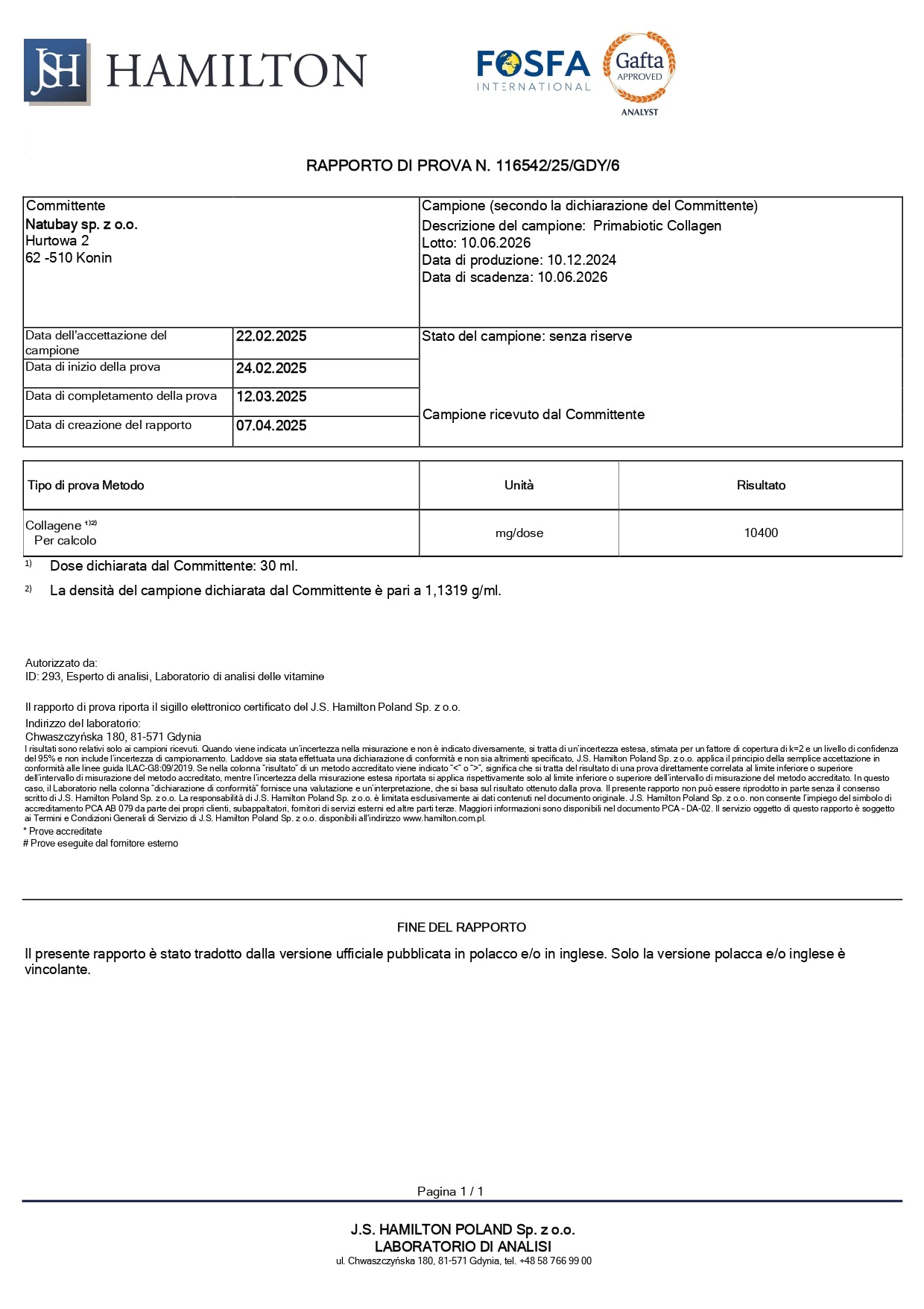 In Primabiotic la qualità e la sicurezza sono la nostra priorità.Per questo il nostro collagene viene sottoposto a test dettagliati in laboratori indipendenti, così da garantire ciò che promettiamo: