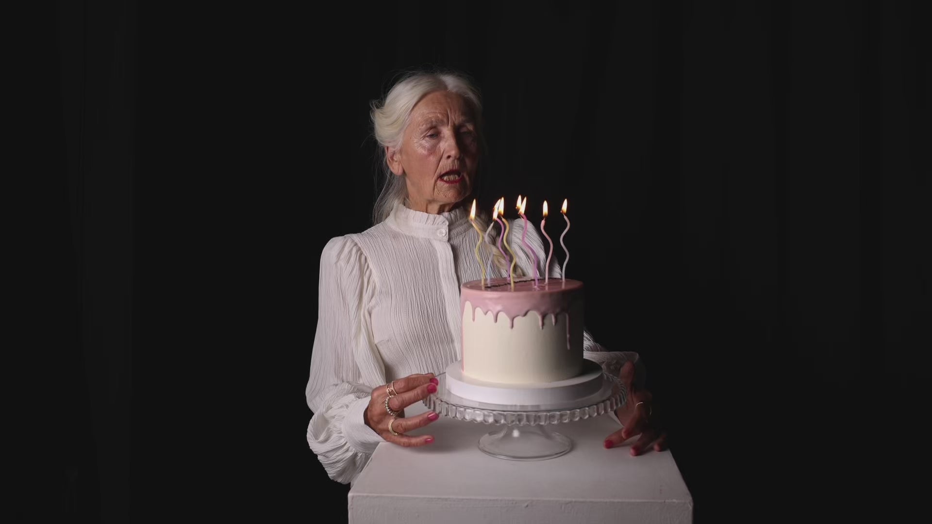 donna con impermeabile beige sorride guardando in basso mentre tiene un flaconcino di Primabiotic Hyaluron